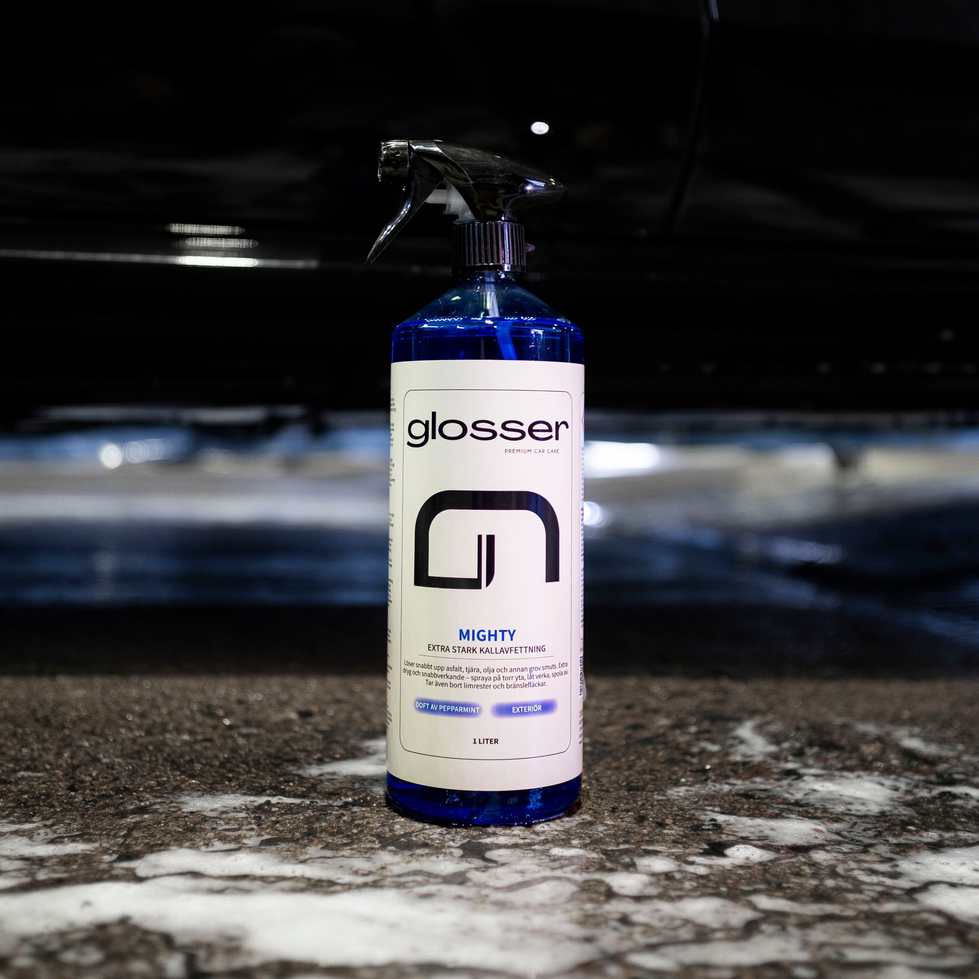 Mighty är en extremt stark avfettning som snabbt löser upp svår smuts som asfalt, tjära, klisterrester, olja, fett och liknande från din bils exteriöra ytor. Den tar även bort riktigt hårt inbitna tjär- och asfaltsprickar med enkelhet. Kraftfullheten gör Mighty extra dryg med låg förbrukning då smutsen enkelt avlägsnas när du spolar av medlet. Bara spraya på, låt verka (utan att torka in) och spola av med högtryckstvätt.